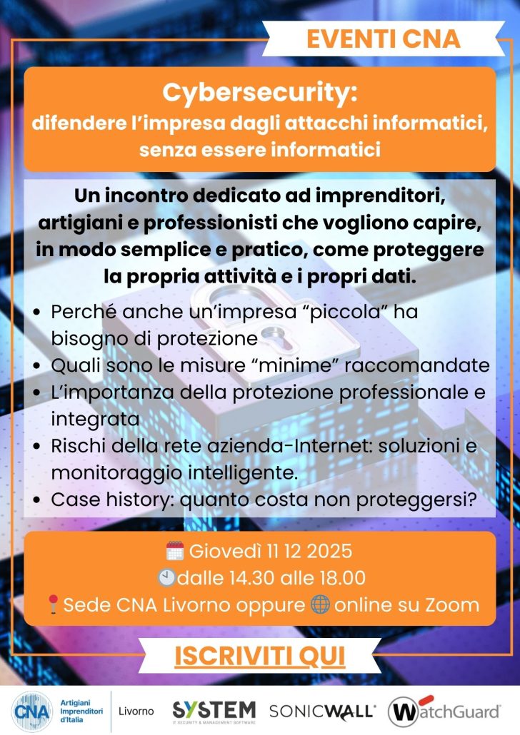 Sarà un’occasione di approfondimento sul perché la sicurezza informatica non sia un “extra” ma una parte integrante del buon funzionamento dell’azienda, anche per PMI e professionisti.
