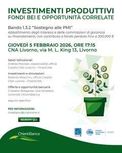 CNA Livorno e ChiantiBanca organizzano un incontro informativo gratuito sul bando 1.3.2. “Sostegno alle PMI”.