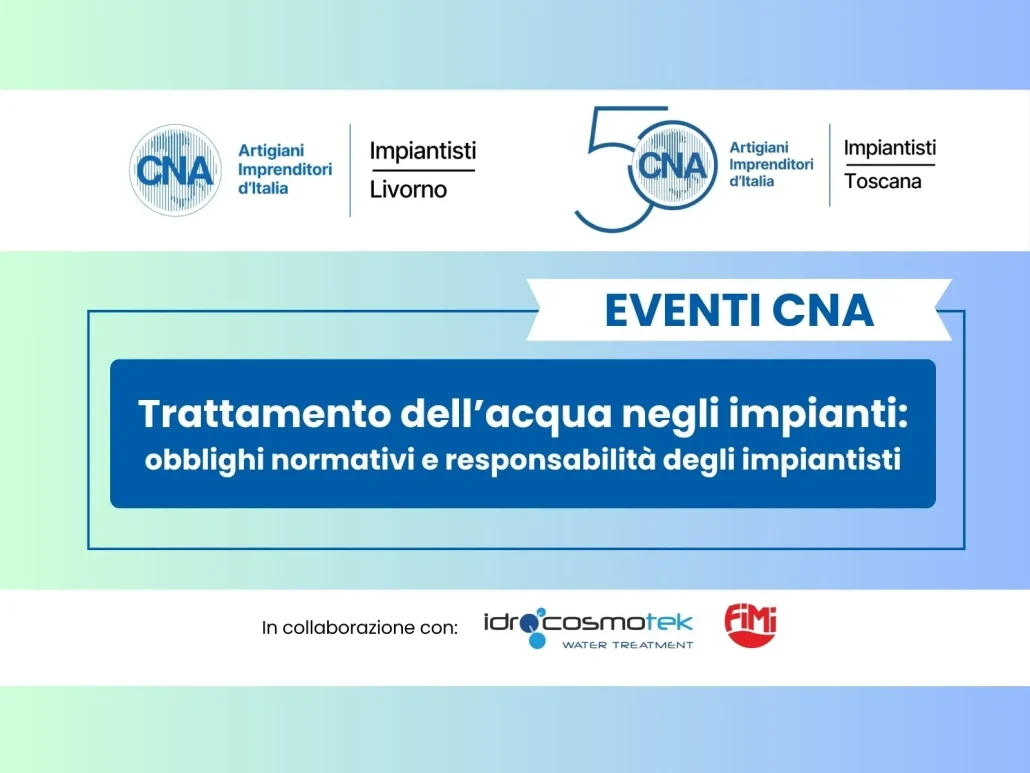 CNA Impiantisti Livorno e CNA Impiantisti Toscana, in collaborazione con Idrocosmotek e FIMI, organizzano un incontro per approfondire i nuovi requisiti minimi di prestazione energetica degli edifici e gli obblighi sul trattamento dell’acqua.